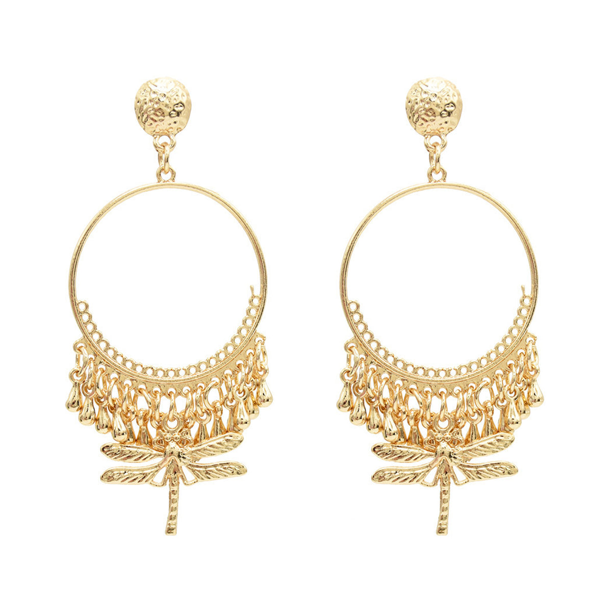 Whimsical charm accentuates your lobes with this 18k gold-plated dragonfly earrings.