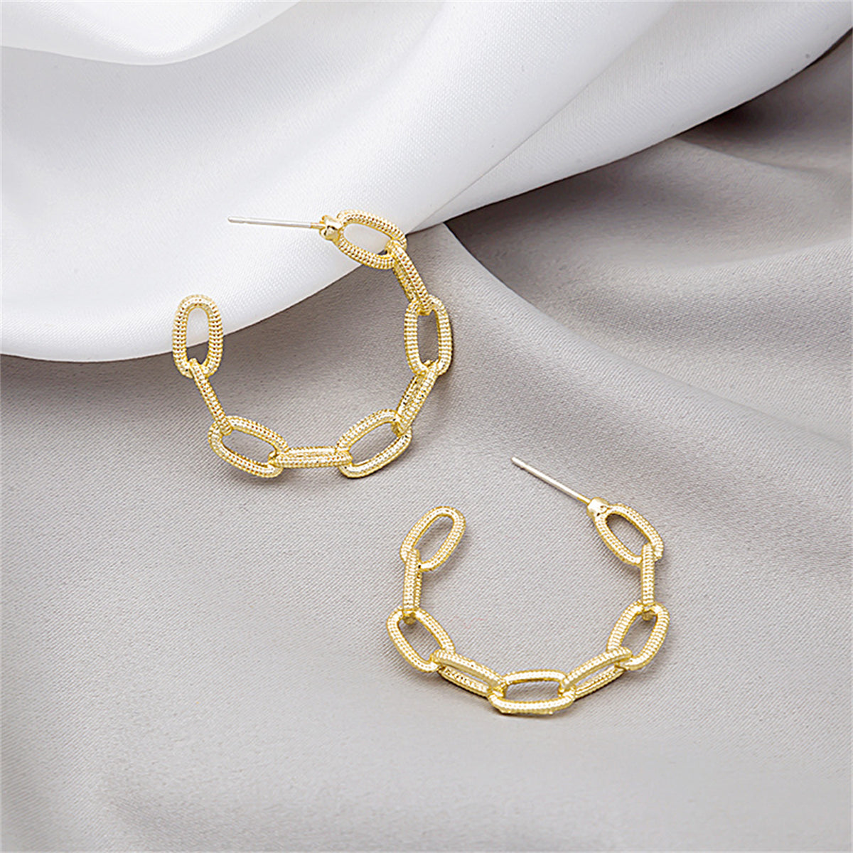 Step out in style with these gleaming 18k gold-plated hoop earrings boasting a classic chain design.