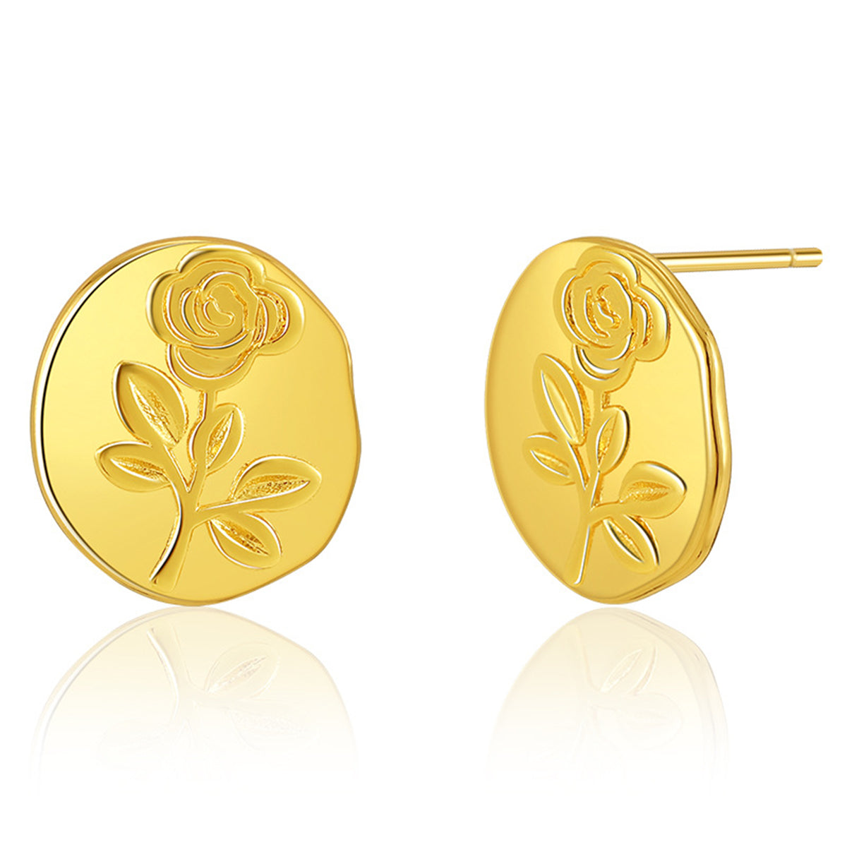You'll bloom in these 18k gold-plated irregular disc earrings decorated with a raised rose design.
