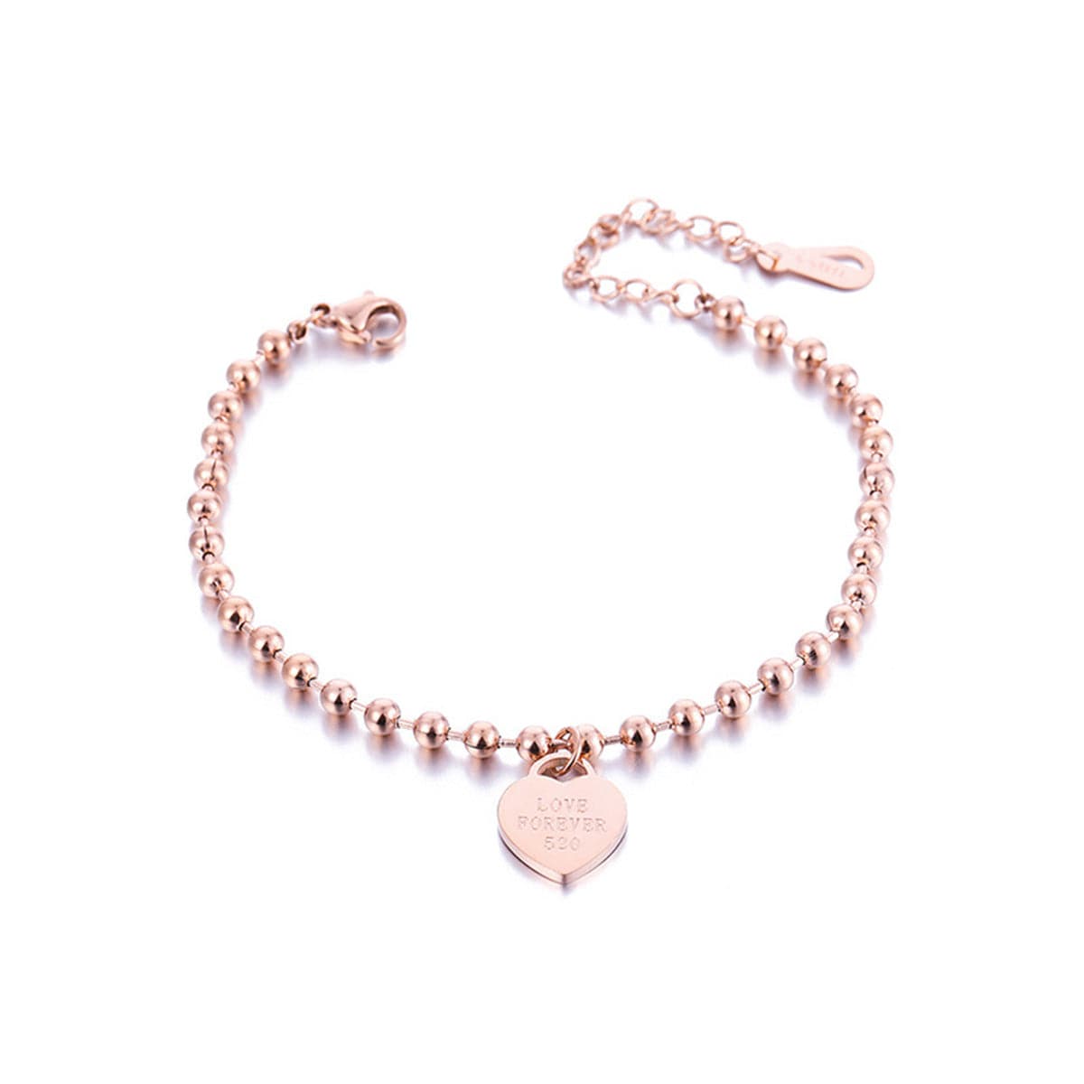 Decorate your wrist with this 18k rose gold-plated bracelet feature a bead chain and heart-shaped charm.