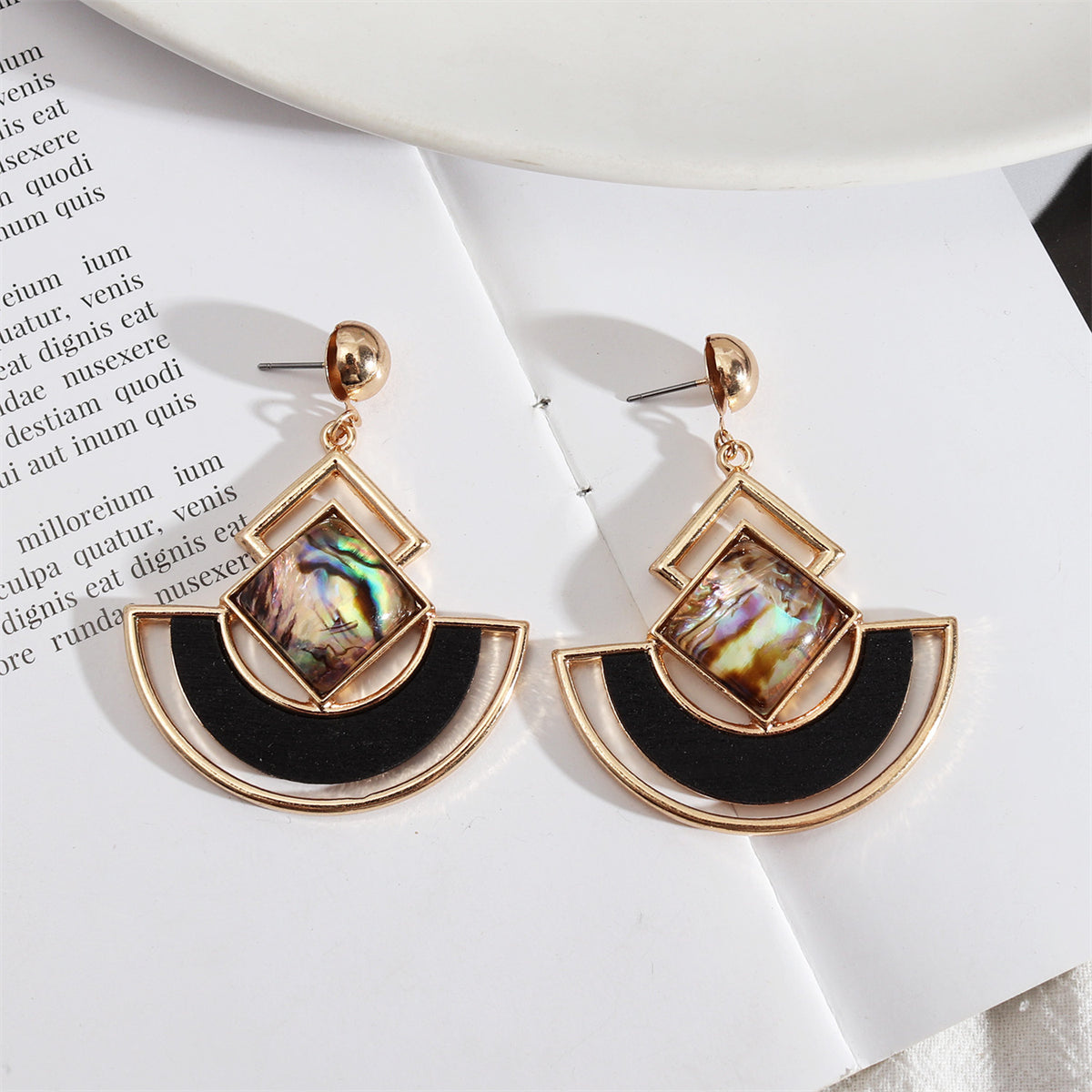 These abalone shell earrings are framed by mid-century 18k gold-plated details.