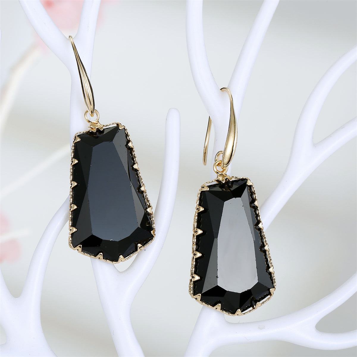 Frame your face with the bold geometry of these shield-shaped crystal earrings in a versatile 18k gold-plated hue.