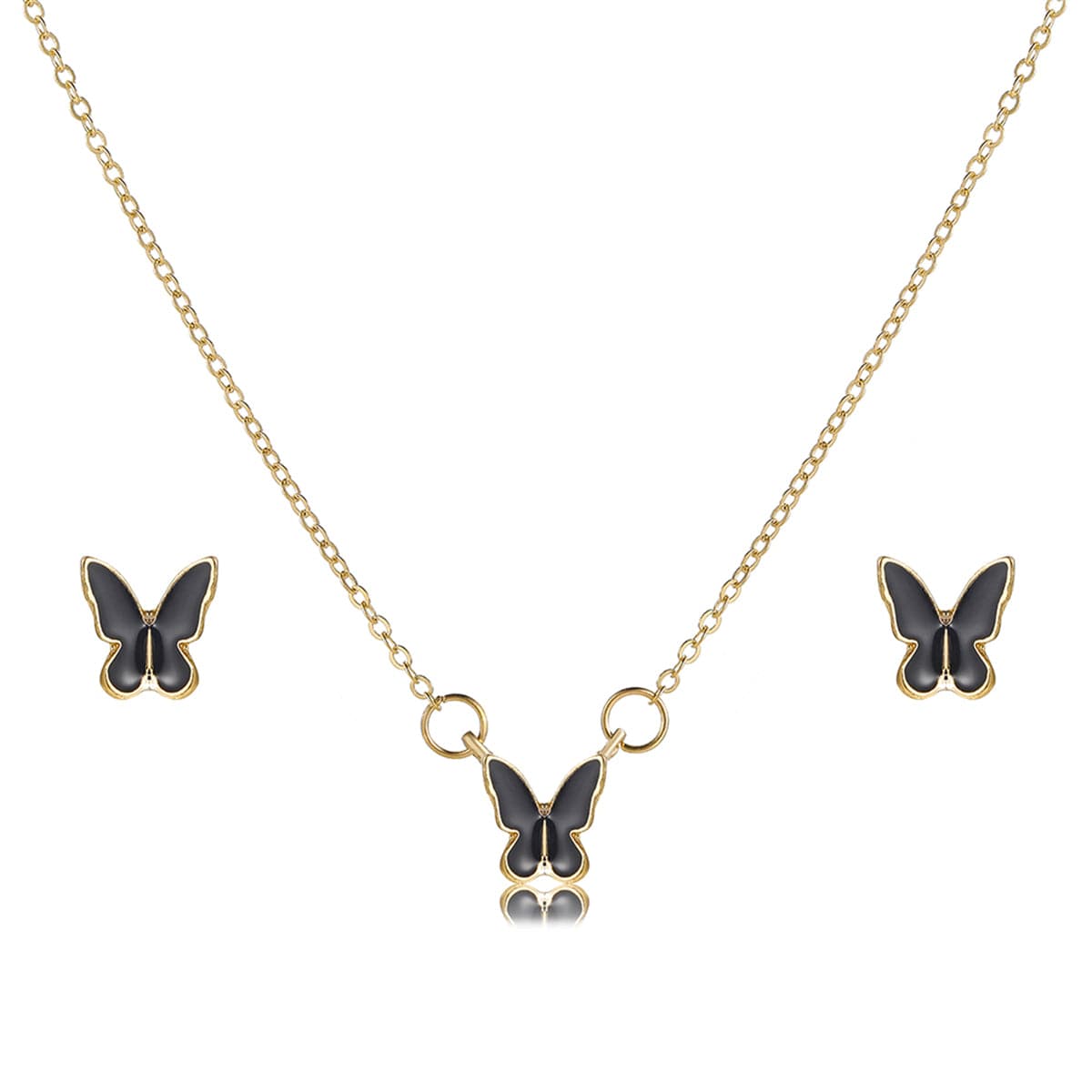 Let your accessory game take flight with this matching pair featuring a butterfly pendant and warm 18k gold-plated finish.