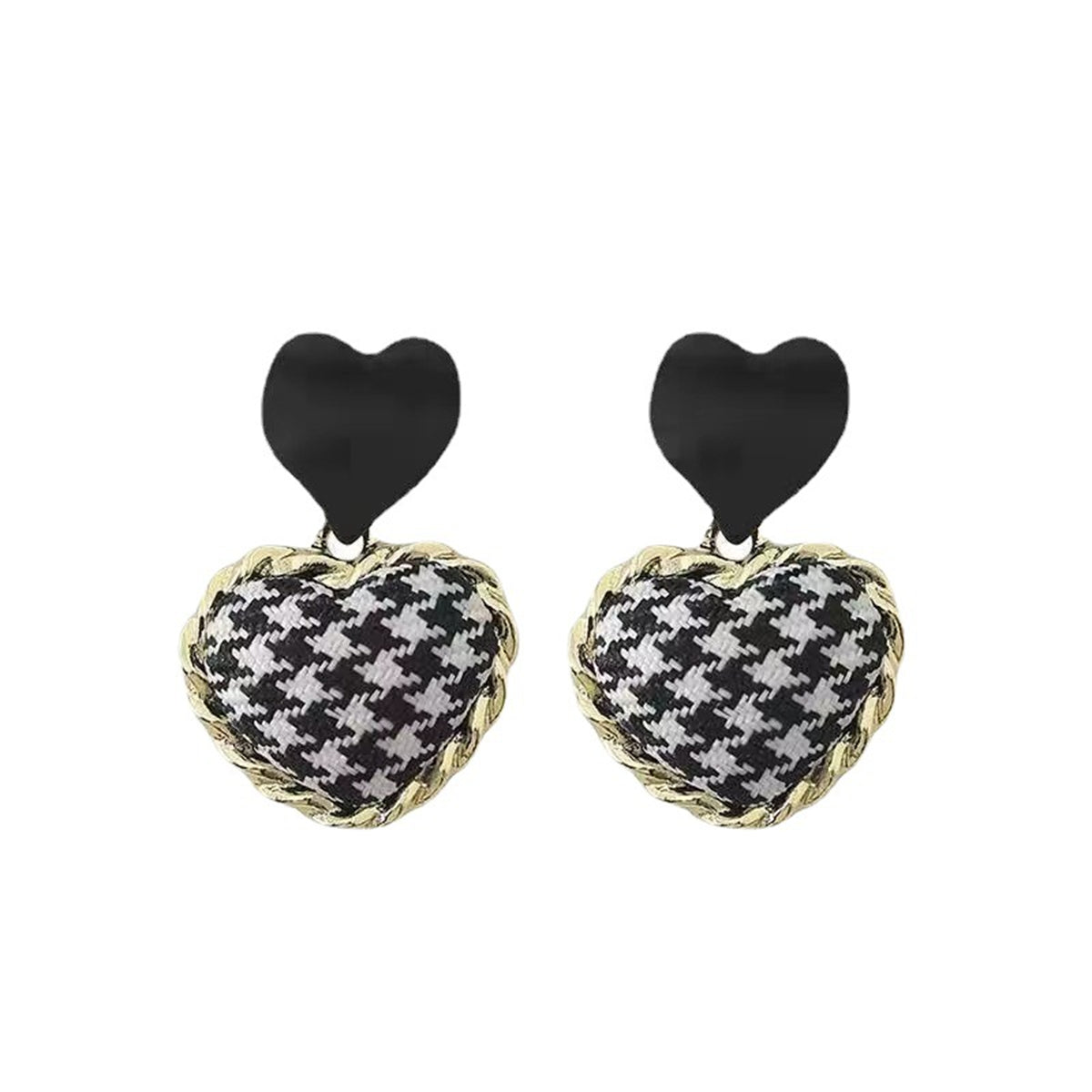 Minimalist drop earrings featuring brown enamel and a charming checkboard heart design.