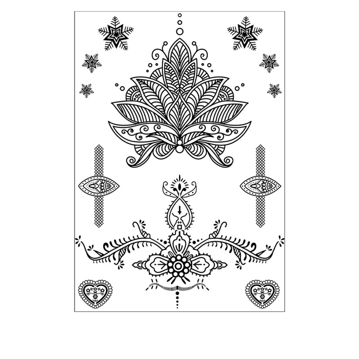 Black Floral Snowflake Temporary Tattoos-Set Of 5