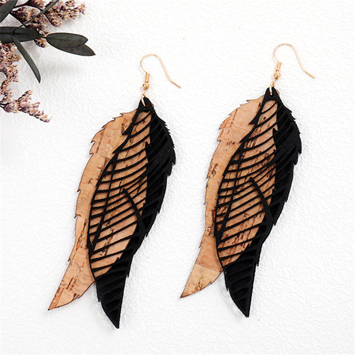 Whimsical leaf drop earrings made with polymer clay and 18k gold-plated hooks.