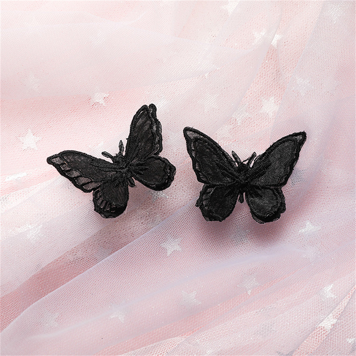 Grace your ears with these silver-plated stud earrings that boast a butterfly-shaped design made with an embroidered material.