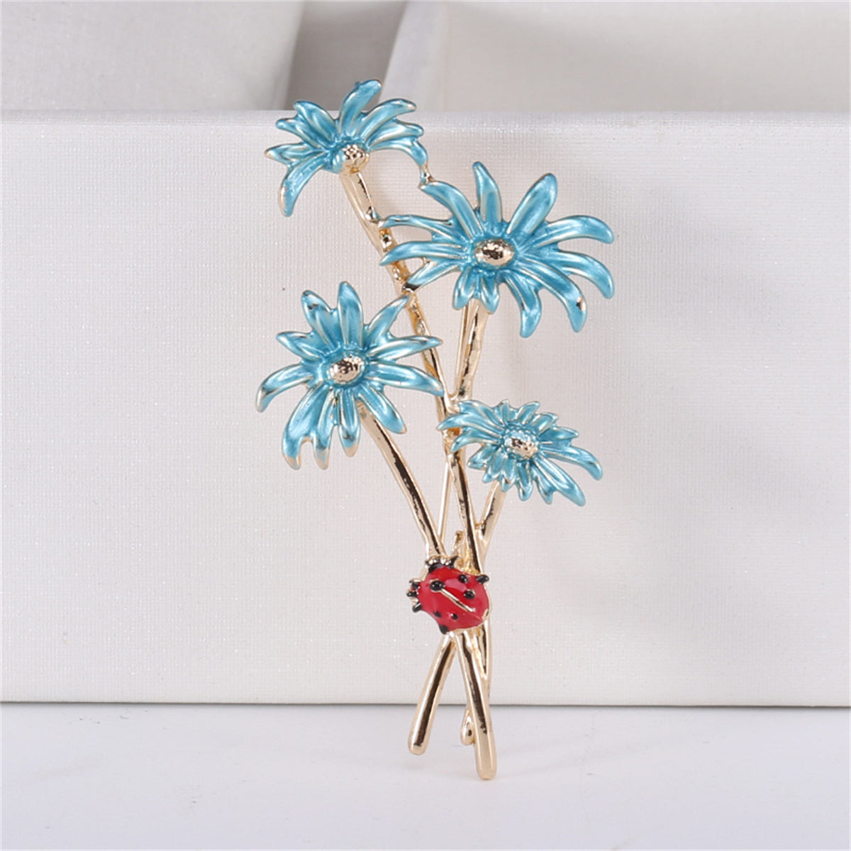 Blue Enamel & 18K Gold-Plated Mum Ladybug Brooch