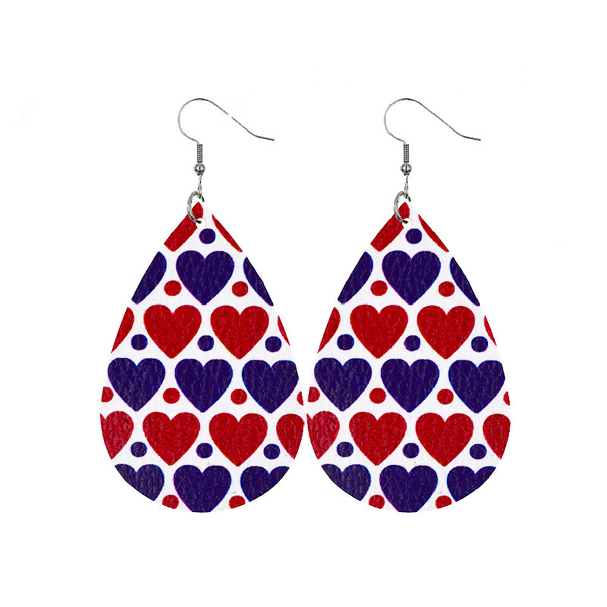 Blue & Red Polystyrene Dot Heart Teardrop Drop Earrings