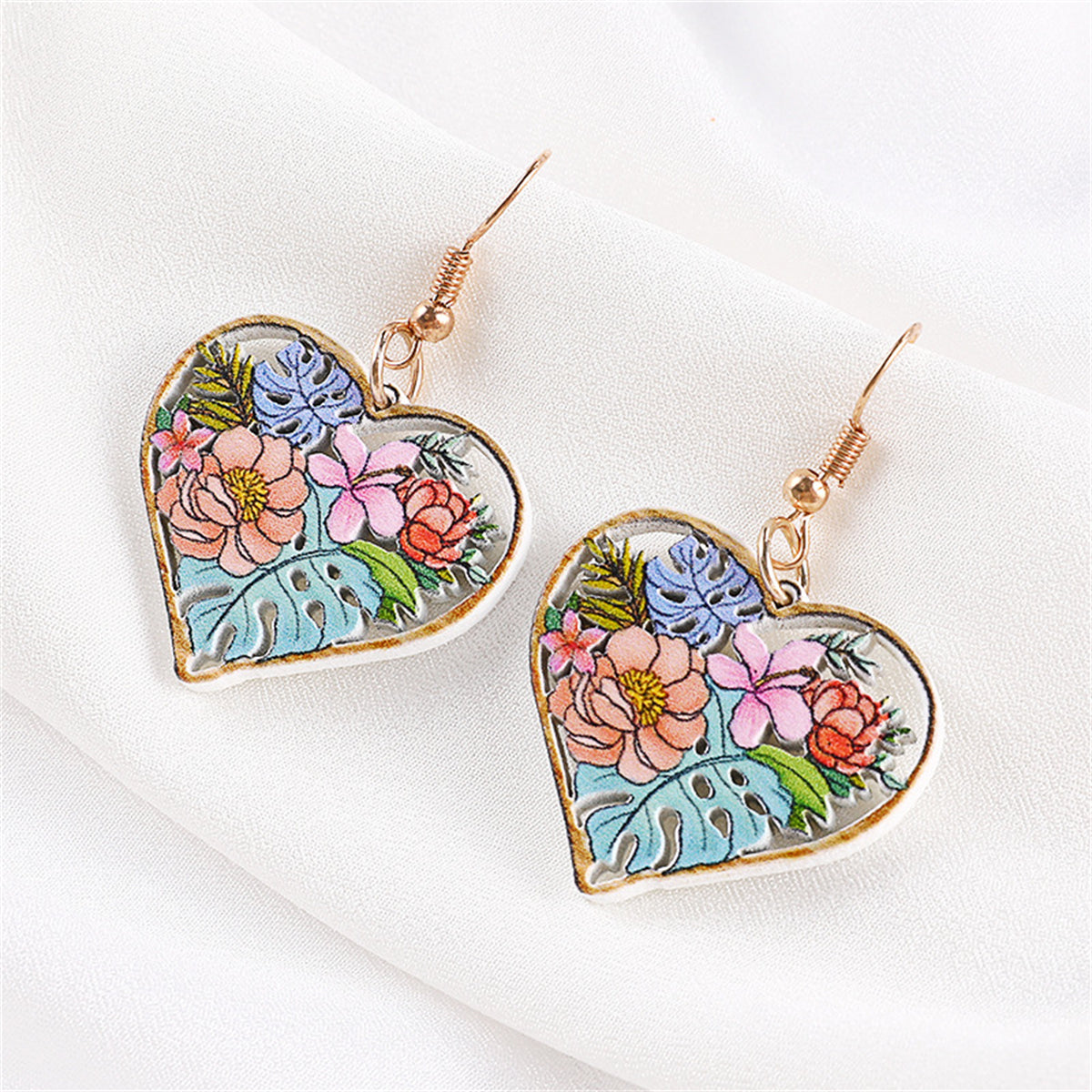 Bring a fresh, floral accent to your look with this pair of earrings made of wood and 18k gold-plated details.