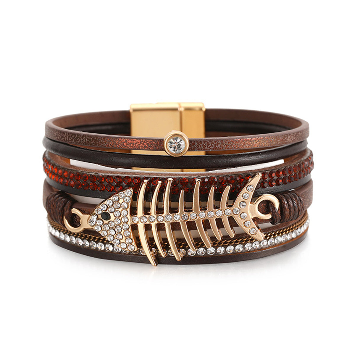 Brown Polystyrene & Cubic Zirconia Fishbone Layered Bracelet