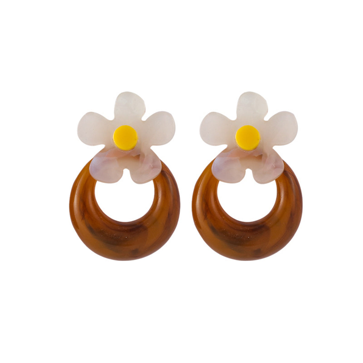 You'll look petal-fresh when you slip on these flower-power studs featuring retro daisy posts and open circles made from glossy acrylic.