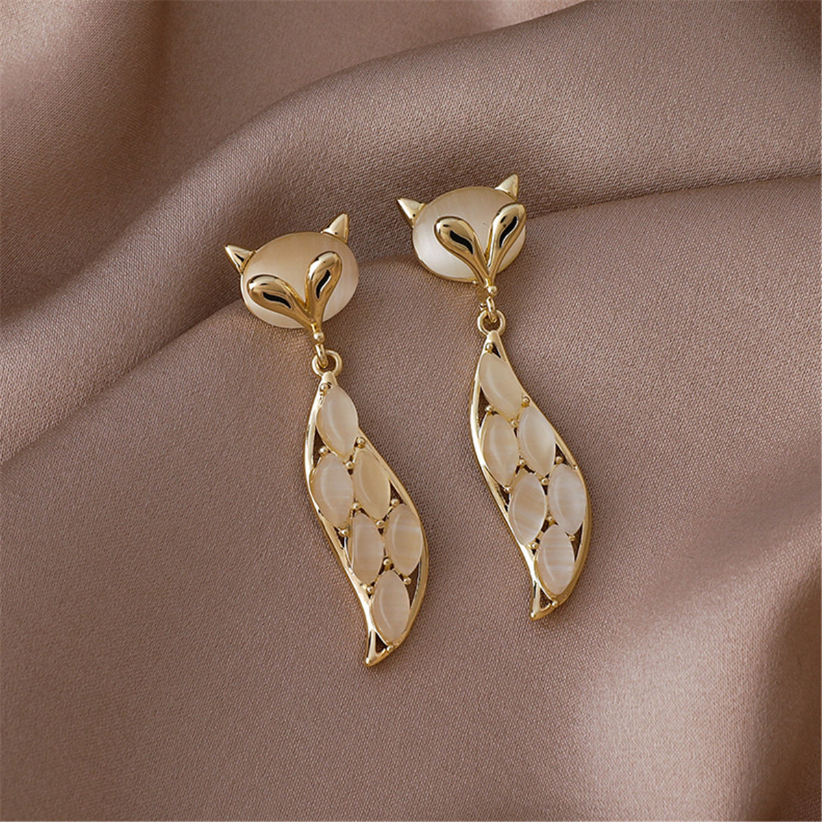 Welcome a dose of shine to your look with this pair of earrings showcasing cat's eye stones in a whimsical fox design.