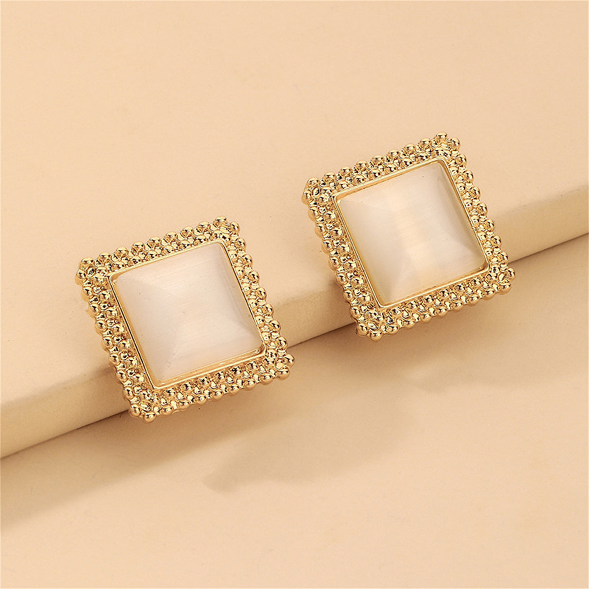 Frame your face with these square stud earrings embellished with cat's eye gemstones and an 18k gold-plated finish.