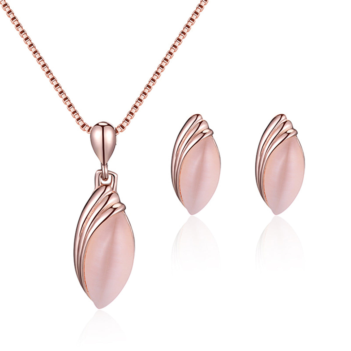 Cats Eye & 18K Rose Gold-Plated Pear Pendant Necklace & Stud Earrings