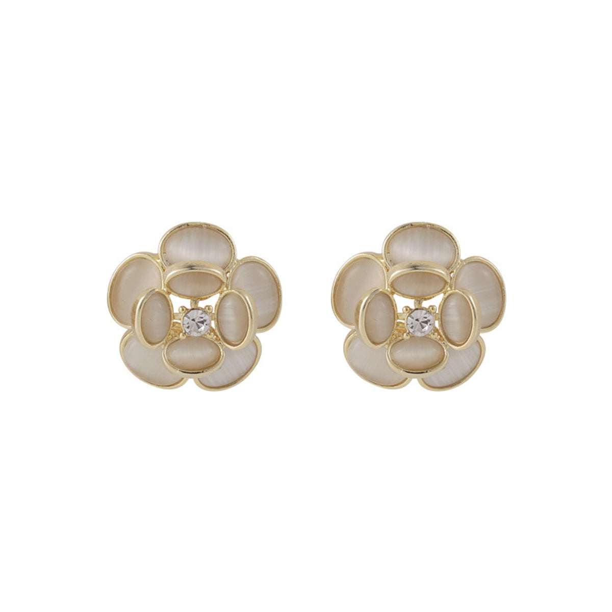Bring a glittering accent to your look with this pair of cubic zirconia-decorated earrings featuring a cats eye stone in a floral shape.