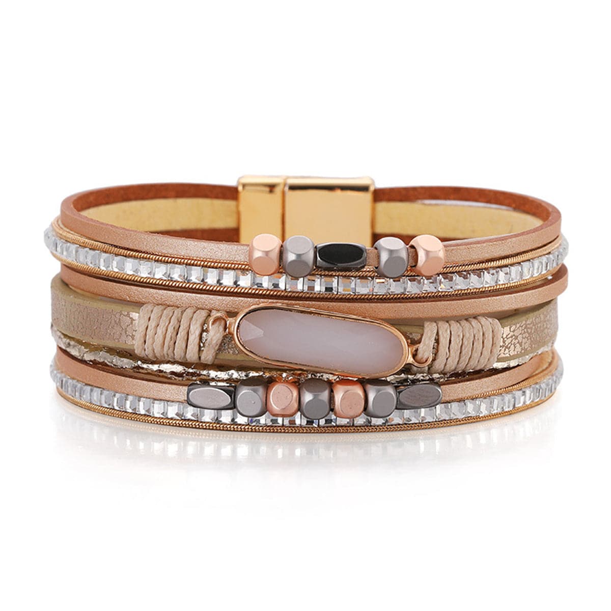 Add a boho touch to your look with this layered bracelet featuring a crystal.