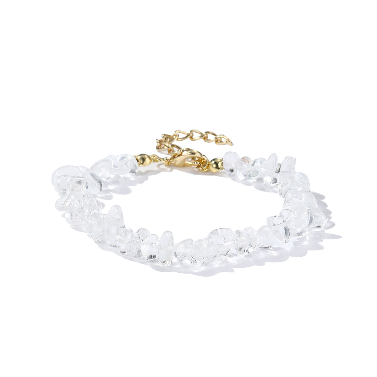 Enhance your accessory collection with our sophisticated white quartz bracelet, adorned with a lavish gold-plated chain and clear resin details. The 18K gold plating not only adds to its allure but also ensures lasting durability, making it a versatile piece for any jewelry assortment. Ideal for both special events and daily wear, this bracelet serves as a stylish statement piece and a considerate gift.