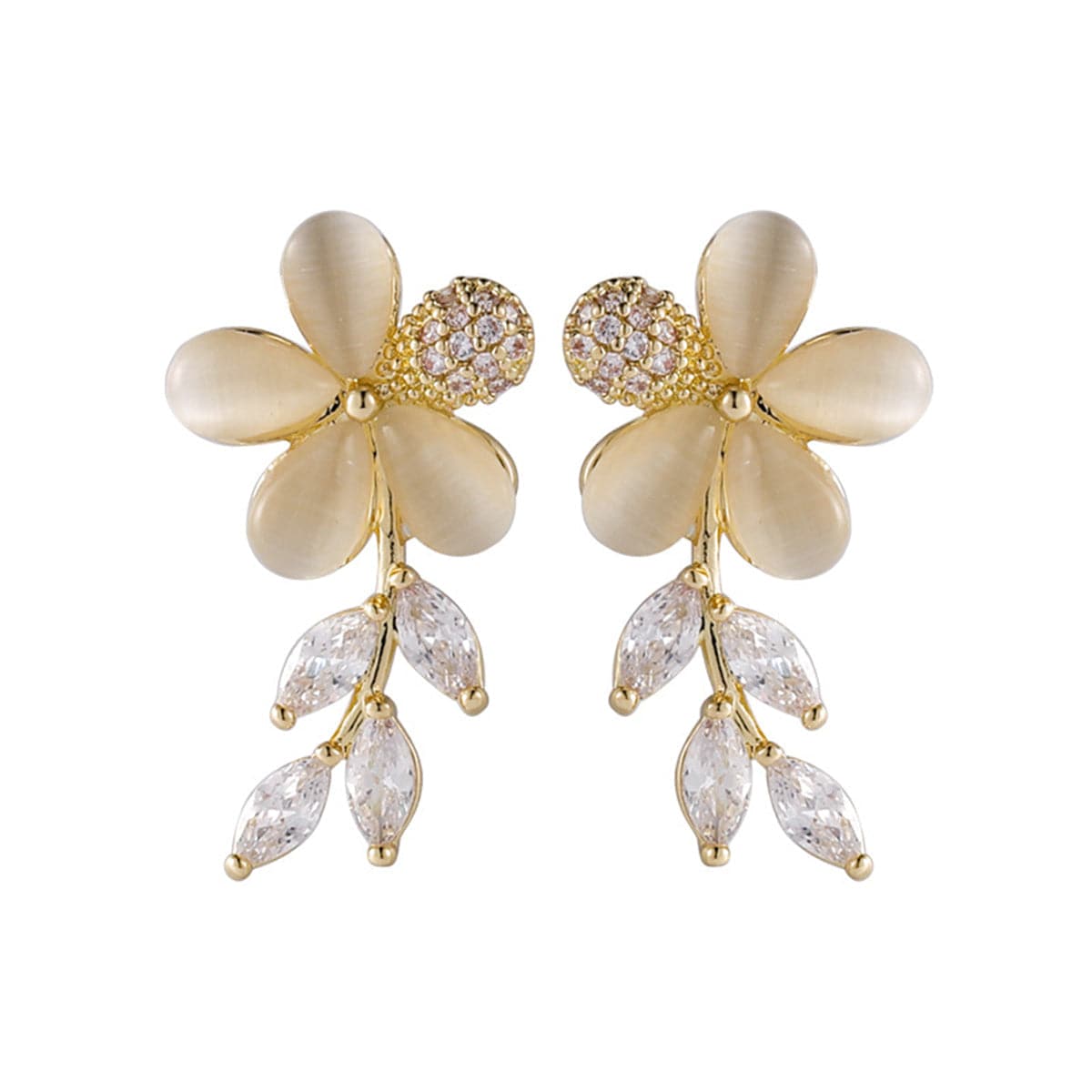 Expand your everyday jewelry options with these chic 18-karat gold-plated drop earrings boasting smooth cat's eye and sparkling crystals set in a floral design.