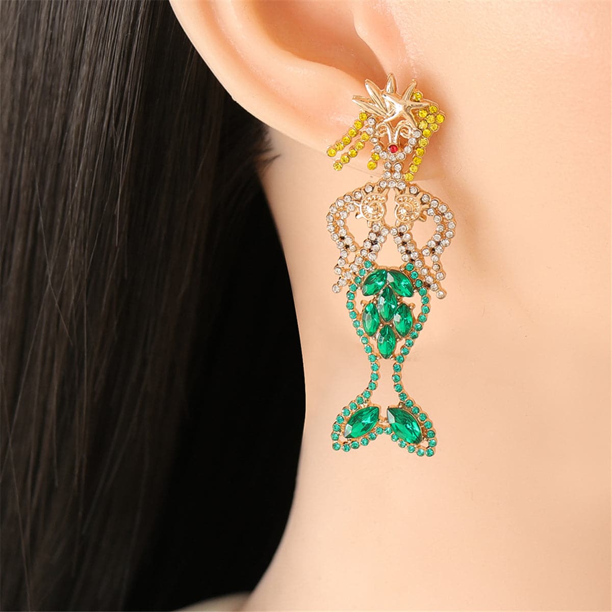 Give ensembles a dazzling finish by accessorizing with these dangling earrings flaunting a playful mermaid design detailed with cubic zirconia.