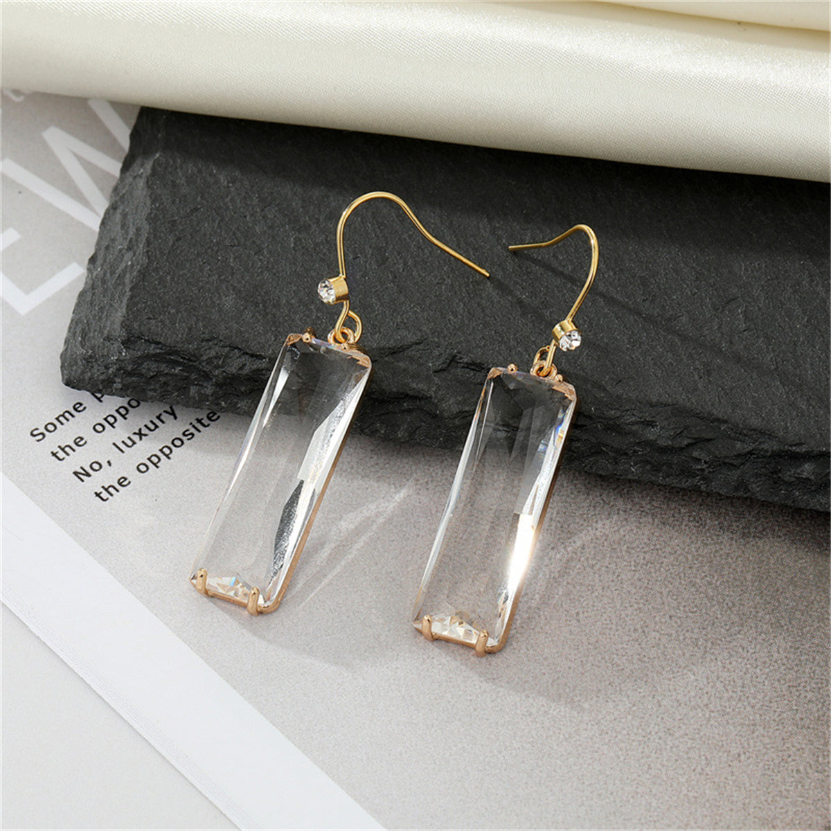These rectangle drop earrings captivate with their light-catching crystal and cubic zirconia accents set in an 18k gold-plated finish.