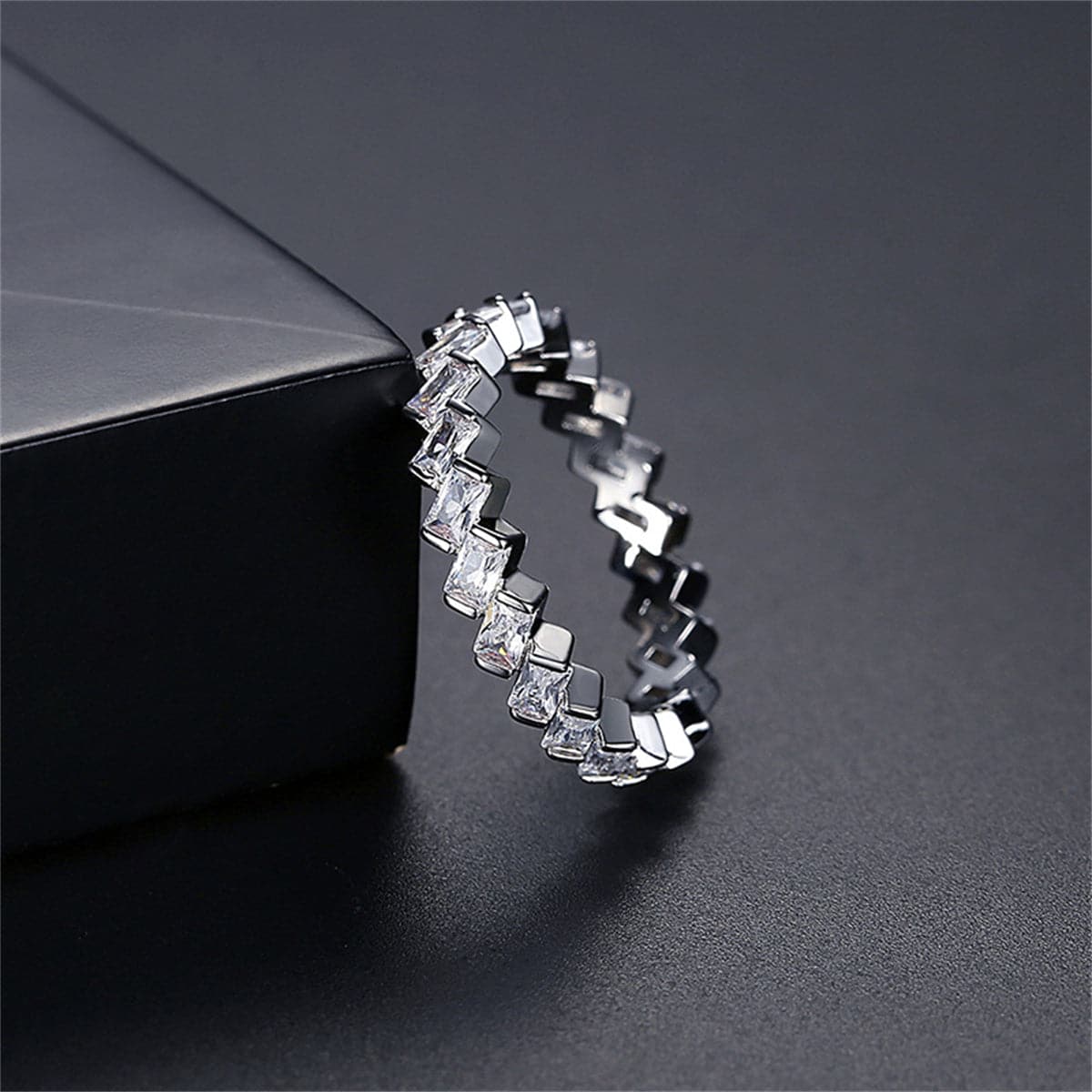 Made with silver-plated finish and baguette-cut crystals, this band ring adds glamorous shine to any ensemble.