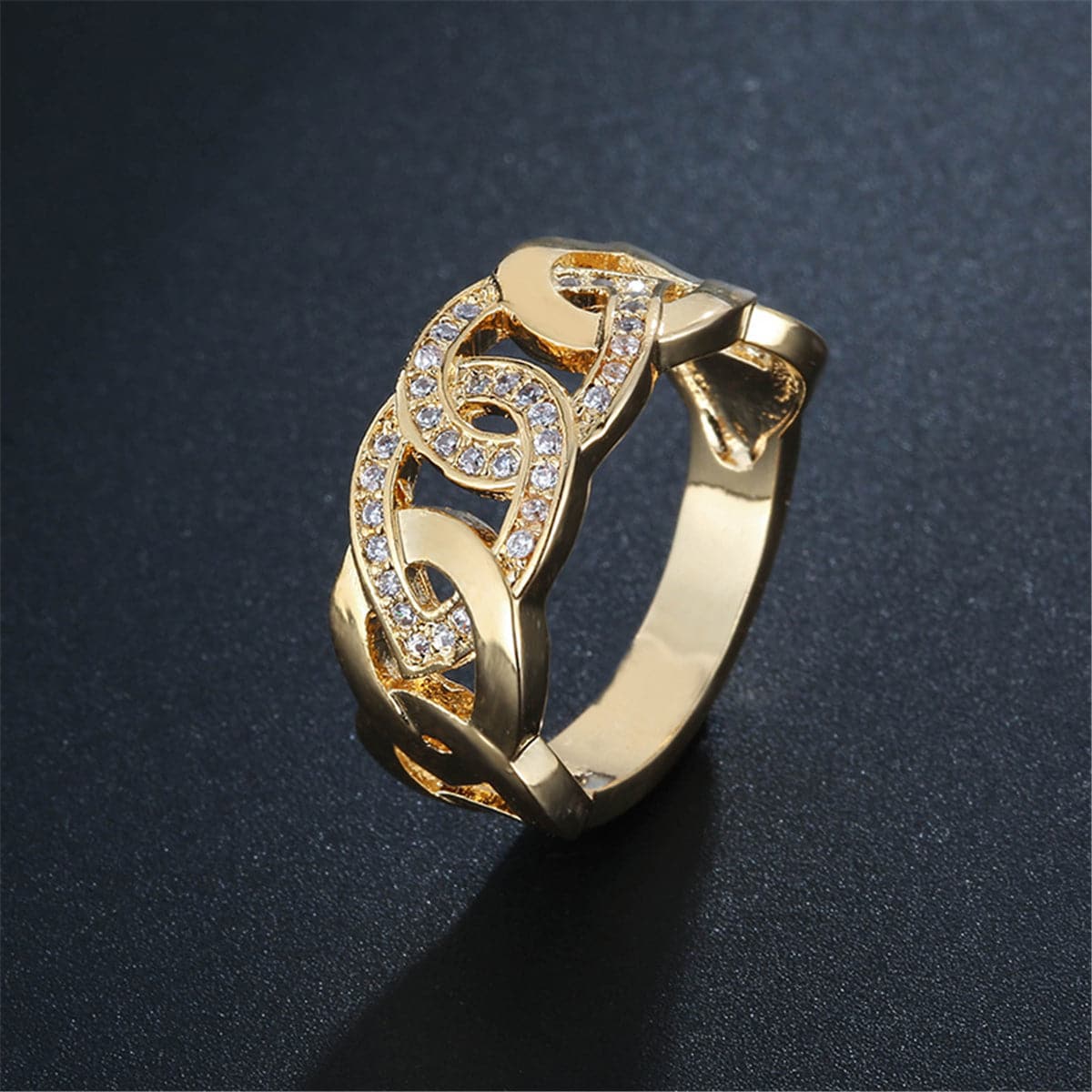 Styled on its own or stacked with other pieces, this eye-catching ring is sure to add sophistication with its intricate cubic zirconia interlocking chain design.