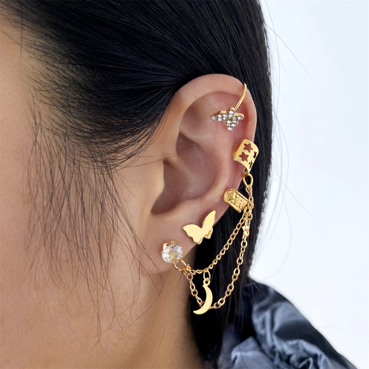 Rejuvenate your jewelry selection with this earring set featuring butterfly designs crafted in an 18k gold-plated material.
