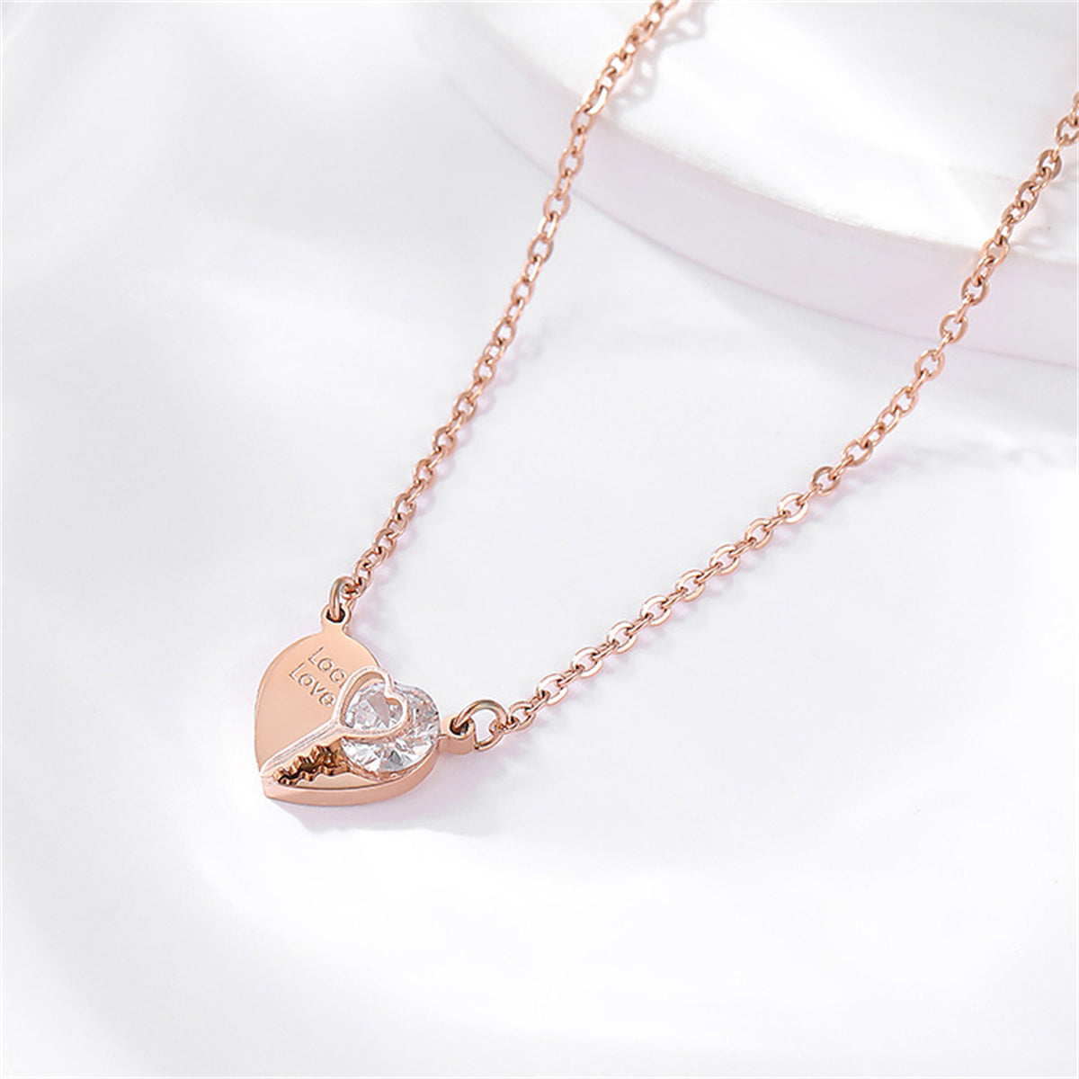 18k rose gold-plated necklace with heart pendant and cubic zirconia key for charming accents.