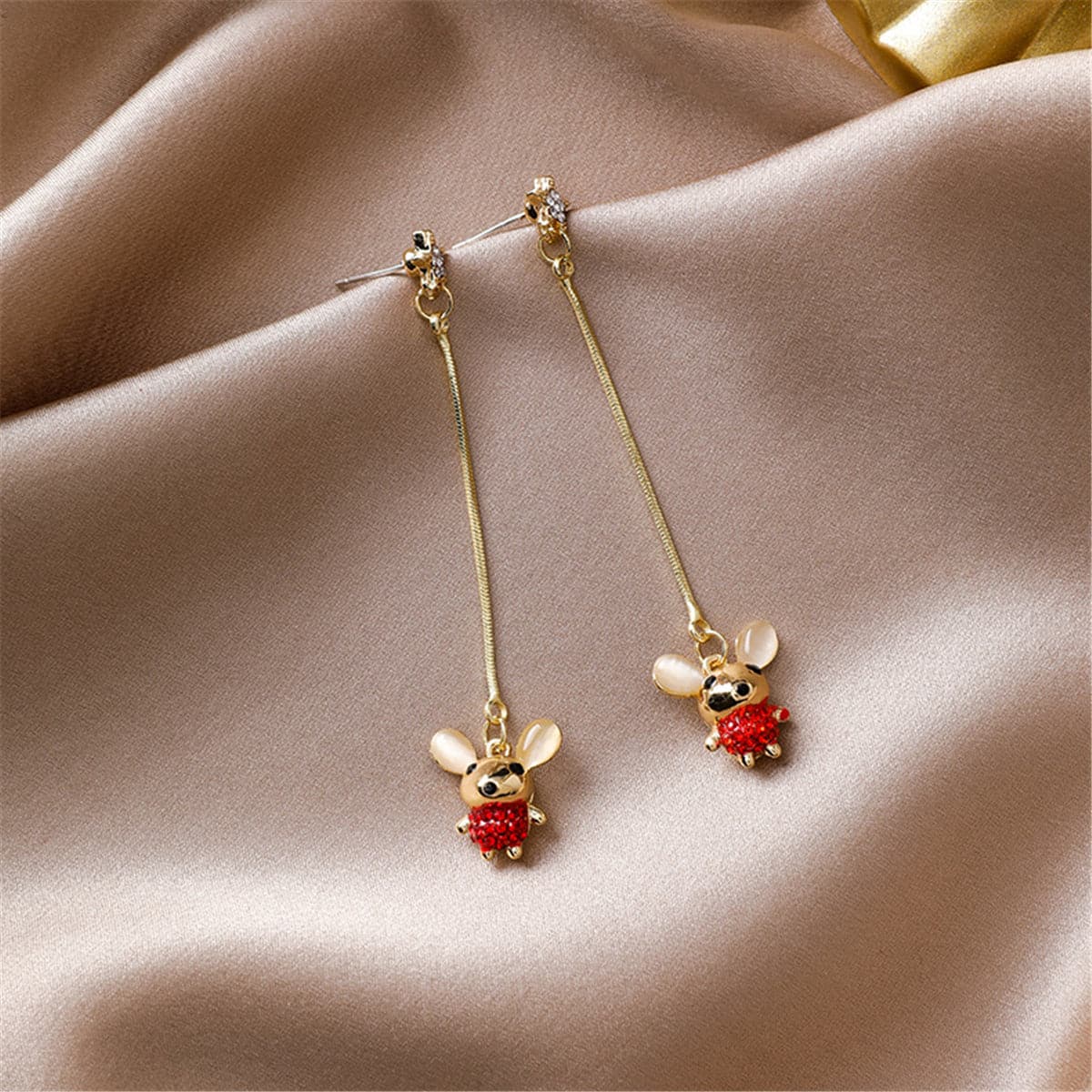 Bring whimsical charm to your look with this pair of shining earrings showcasing tiny mouse designs decorated with cubic zirconia and cat's eye stones.