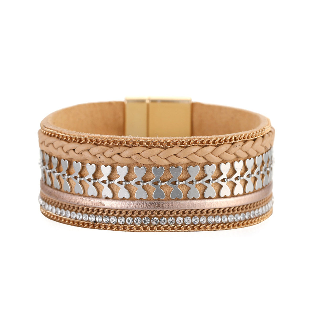 This magnetic-clasp bangle features a two-tone finish with a multi-chain design, heart charms and cubic zirconia accents.