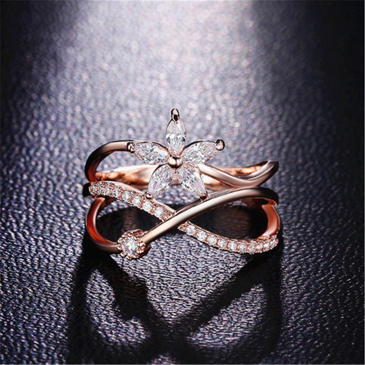 Cubic Zirconia & Crystal 18K Rose Gold-Plated Floral Ring
