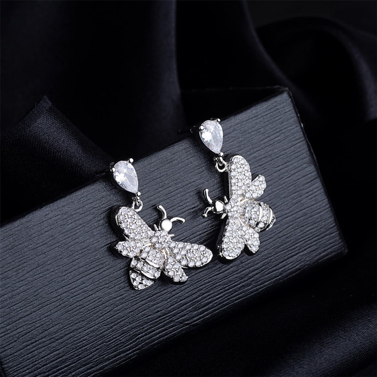 Dangle buzzing style from your lobes with these bumblebee drop earrings flaunting sparkling cubic zirconia and a sleek silver-plated finish for eye-catching accessorizing.