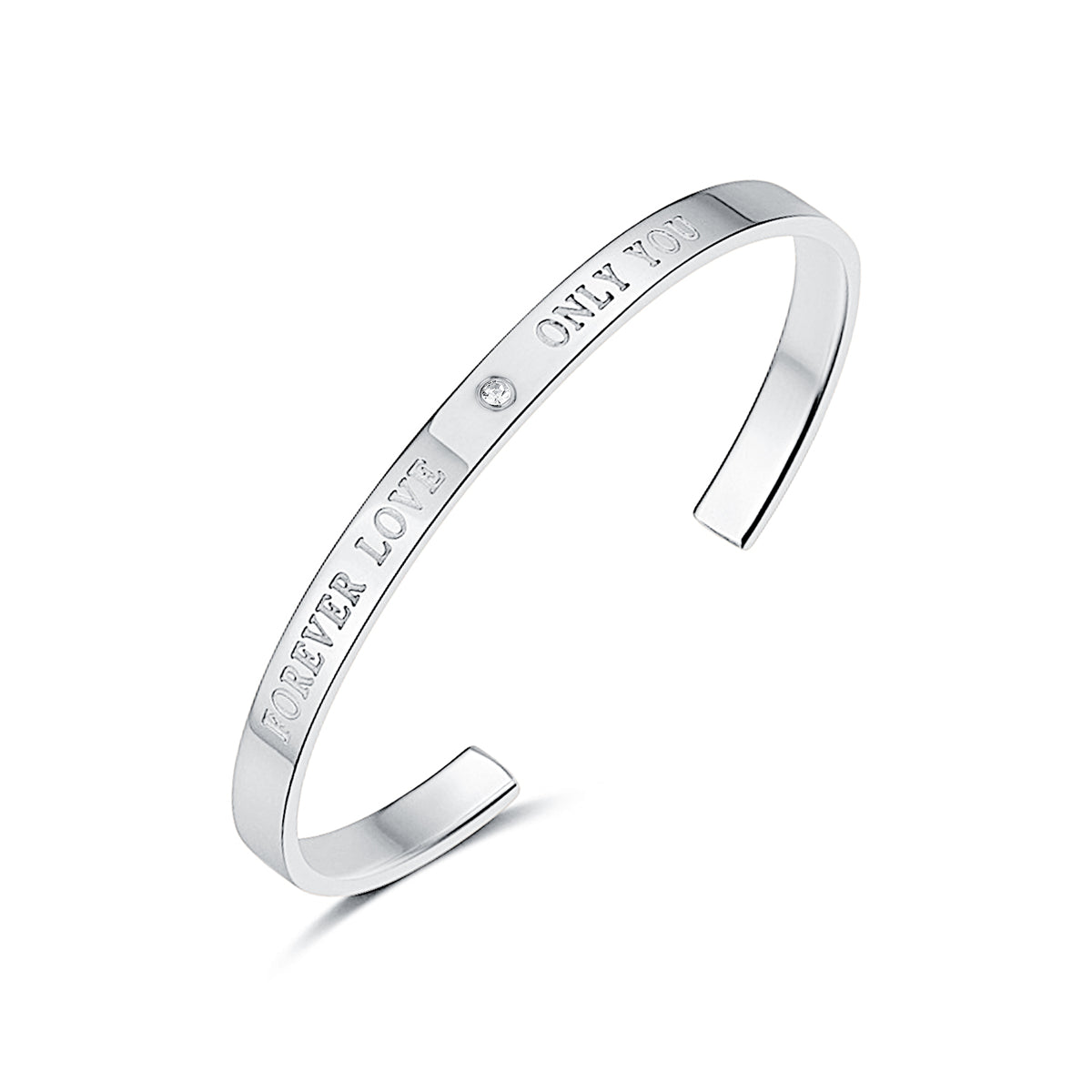 Featuring a delicately engraved message accented with sparkling cubic zirconia, this cuff bracelet is a simply elegant addition to your accessory collection.