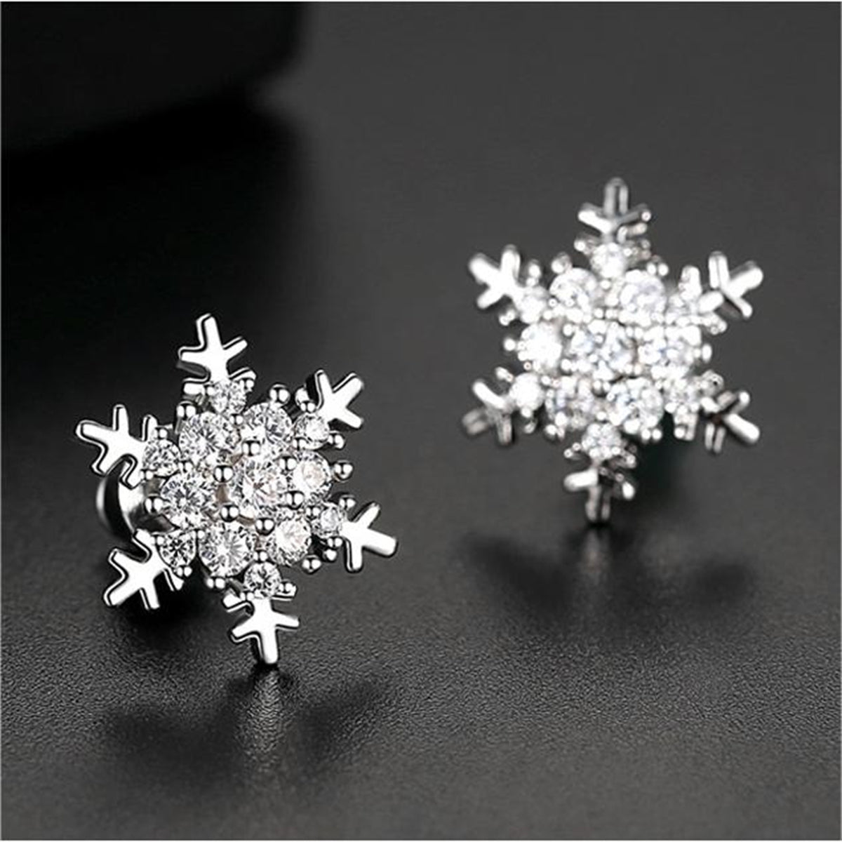 Dazzling cubic zirconia stud earrings with a unique snowflake design.
