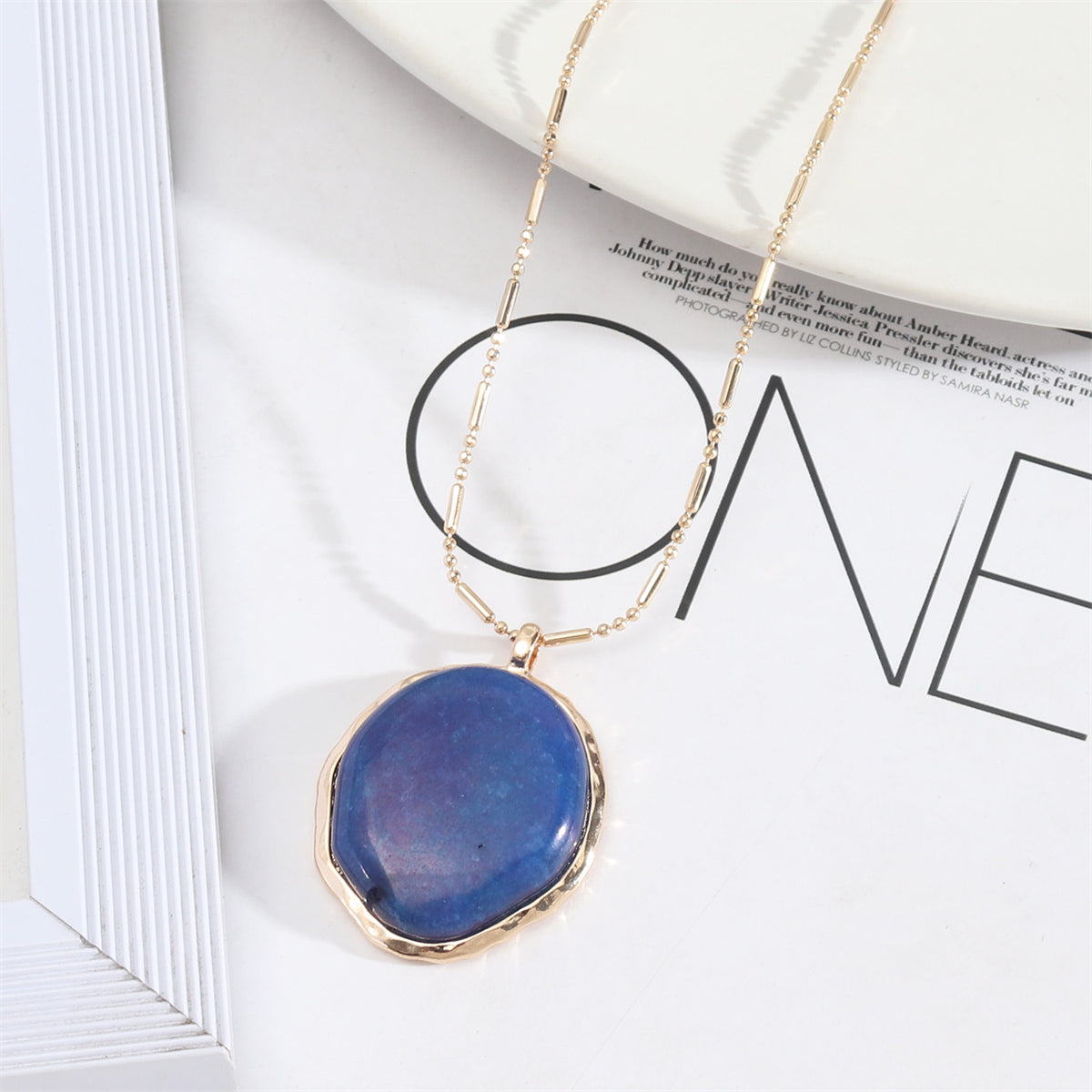 Finish your look with the vibrant blue oval quartz and shining 18k gold-plated chain of this simply sophisticated pendant necklace.
