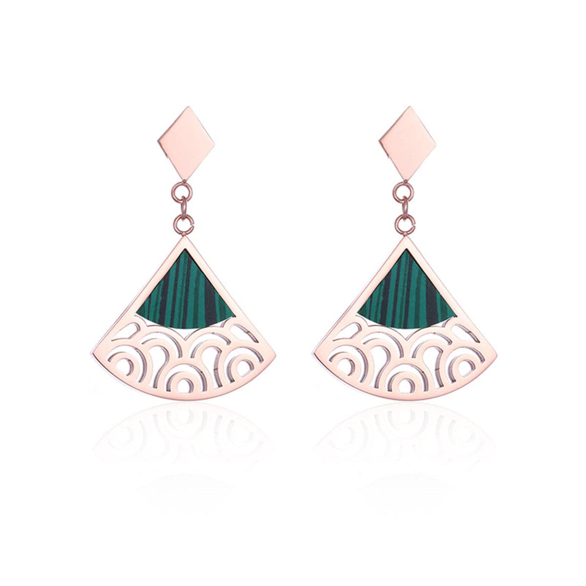 Sweeten your glittery style when you bedeck your look with these drop earrings created from 18 karat rose gold-plated steel illustrating an artful design.