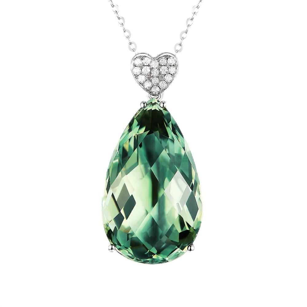 Green Crystal & cubic zirconia Pear Cut Heart Pendant Necklace - streetregion