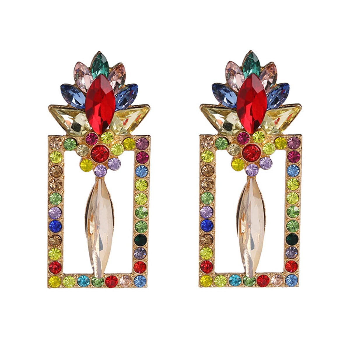 Add a hint of sparkling elegance to your ensemble with this pair of drop earrings enriched with dazzling multicolor crystals and cubic zirconia accents.