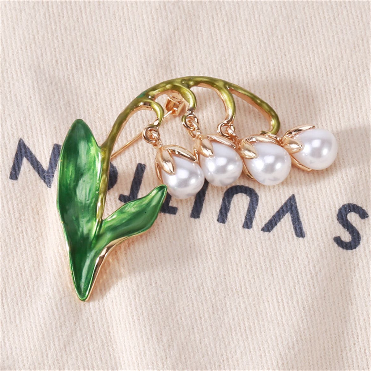 Add a little vintage-inspired charm to your ensemble with this stunning brooch featuring a lily of the valley motif.
