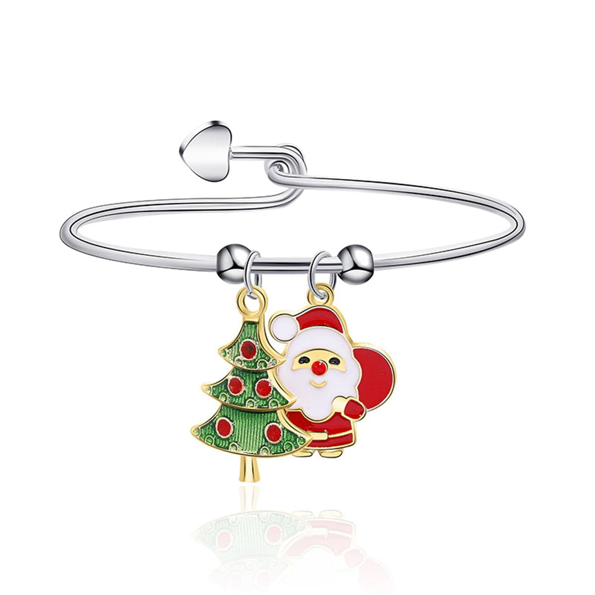 Show off Christmas accents wearing this bangle and its themed Santa and tree charms.