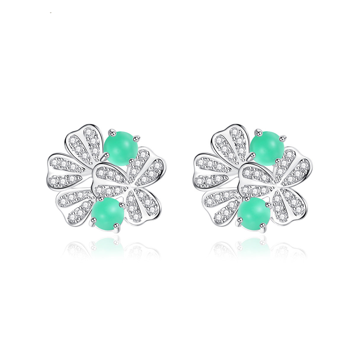 Accessorize with this pair of silver-plated stud earrings embellished with jade stones and cubic zirconia.