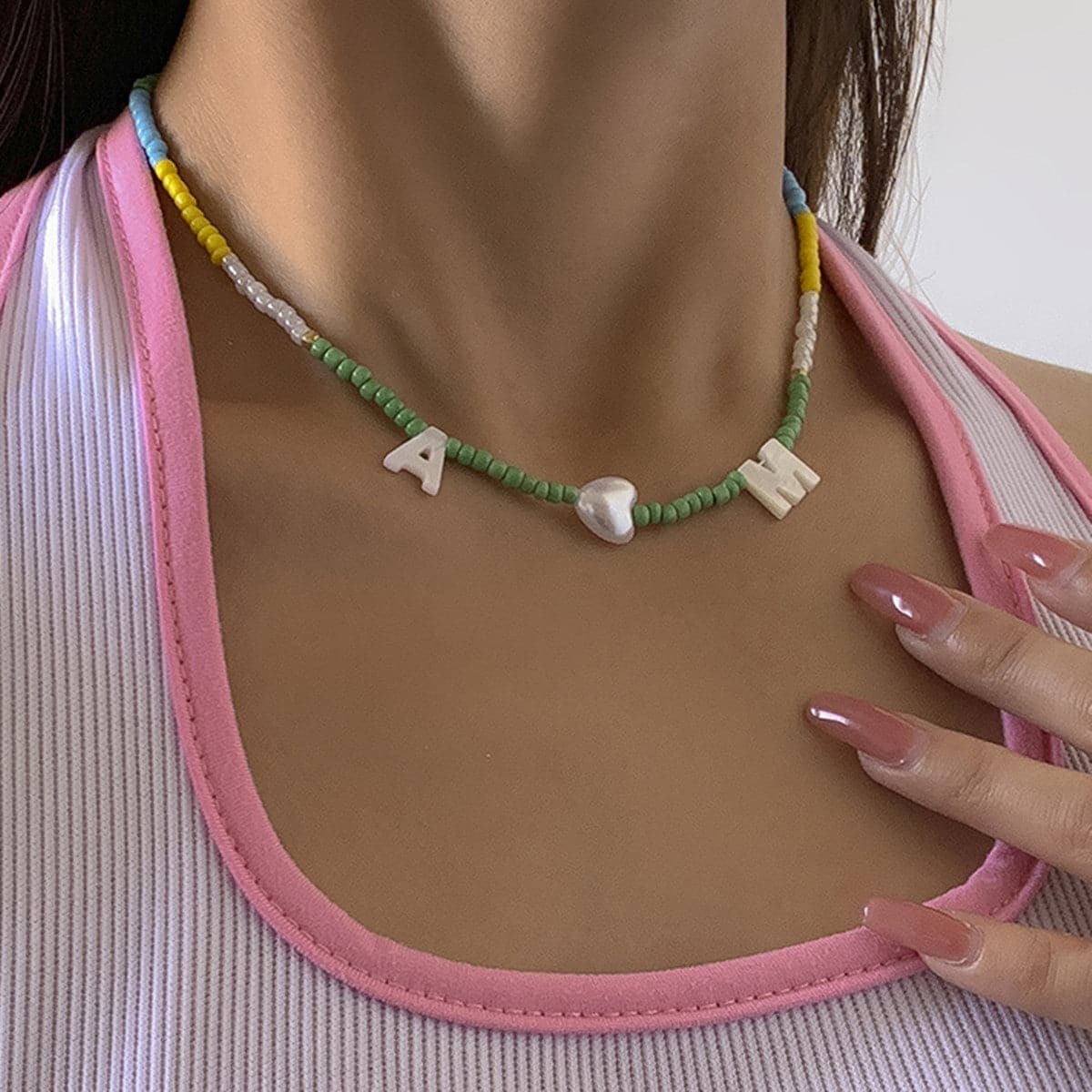 Show off your love for the A or M in your life with this playful choker necklace featuring pearl and teal howlite for a colorful touch of luxury.