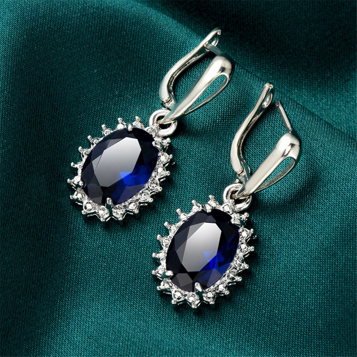 Navy Crystal & Silver-Plated Oval Drop Earrings