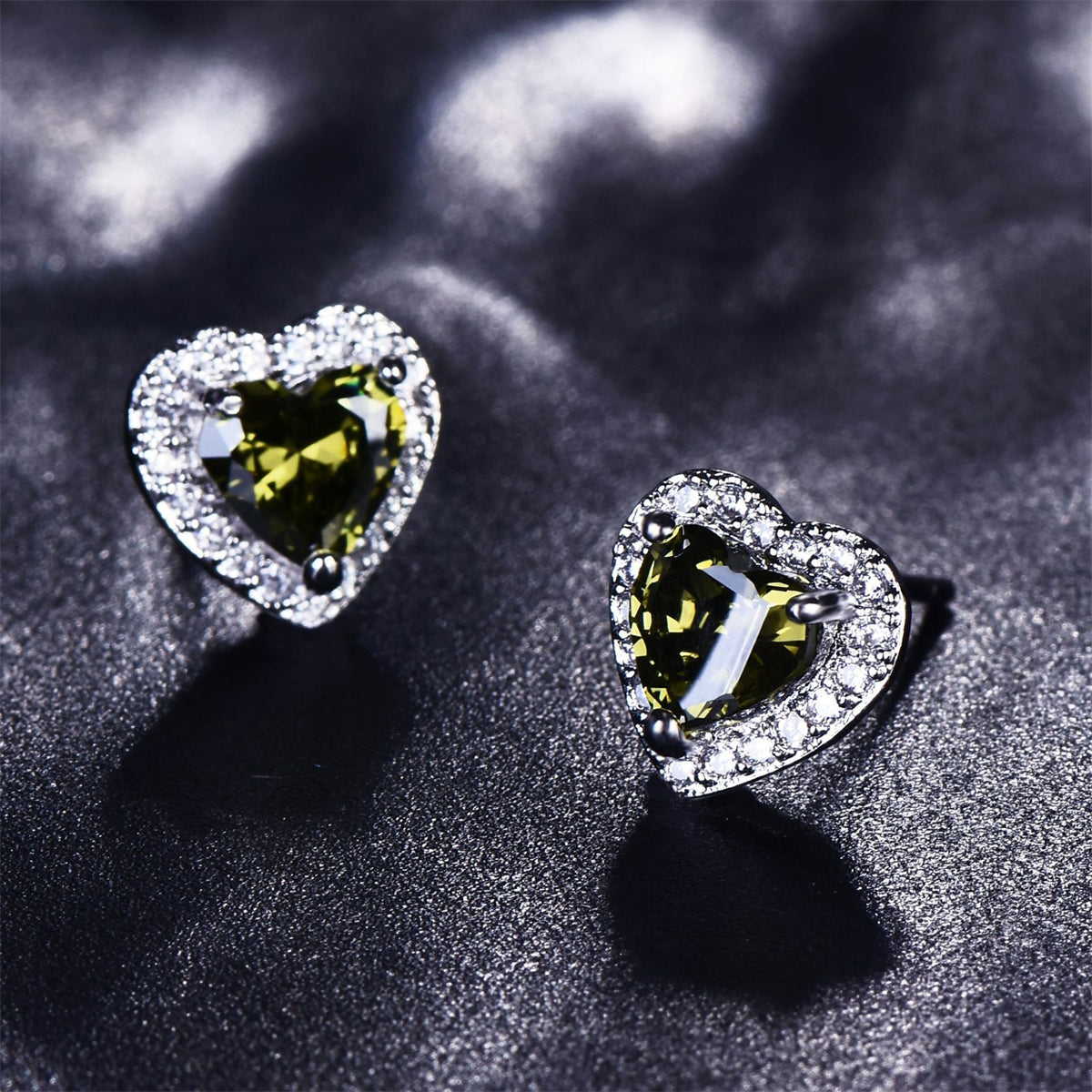 Olive Crystal & Cubic Zirconia Silver-Plated Halo Heart Stud Earrings