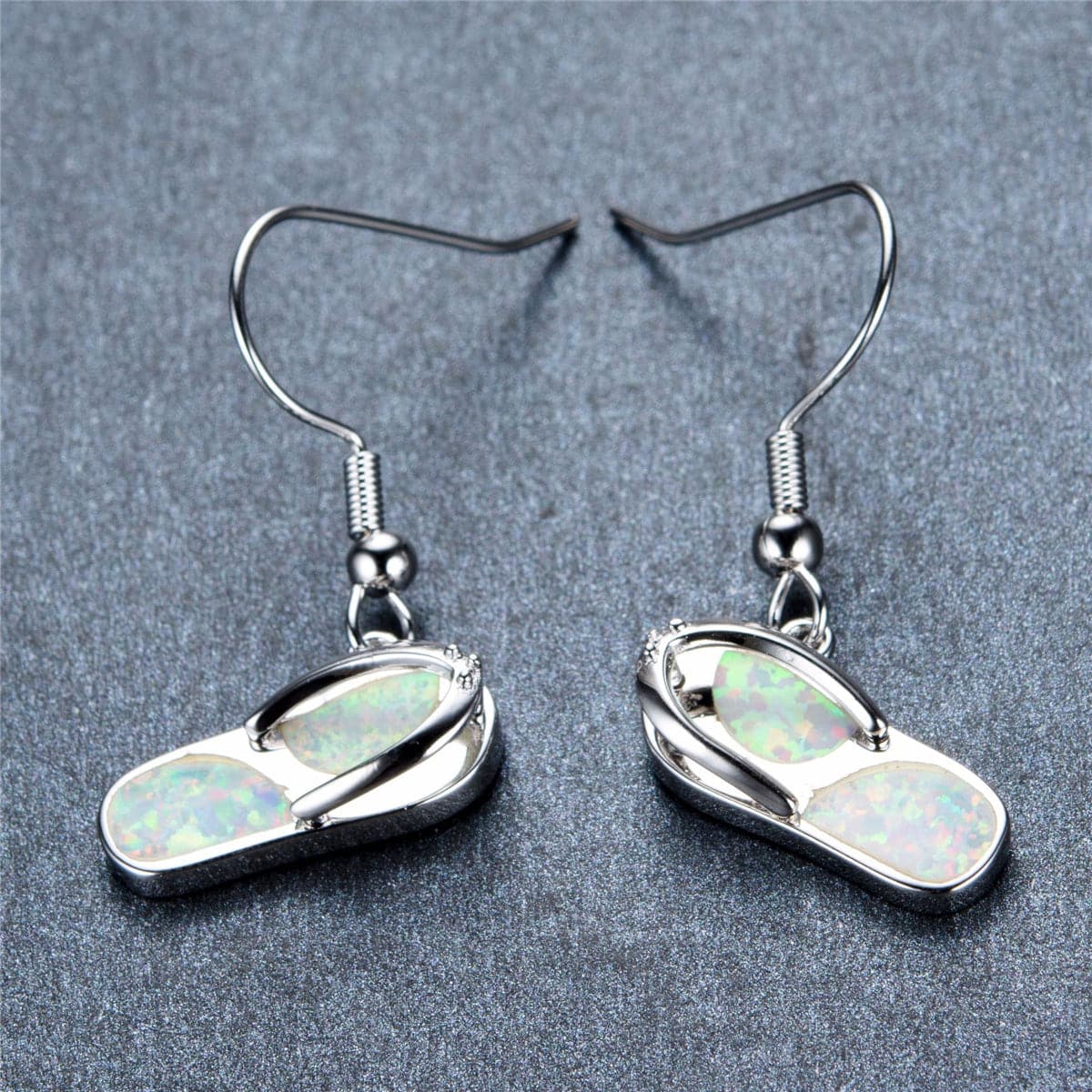 Dangle sunny-day style from your lobes with these flip-flop drop earrings embellished with opal centers and an elegant silver-plated finish for iridescent ear-wear.