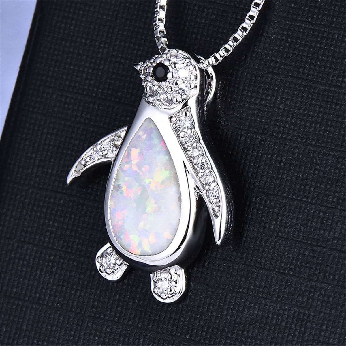 Top off your everyday ensembles in shining style with this penguin pendant necklace embellished with an iridescent opal center and dazzling cubic zirconia accents for eye-catching accessorizing.