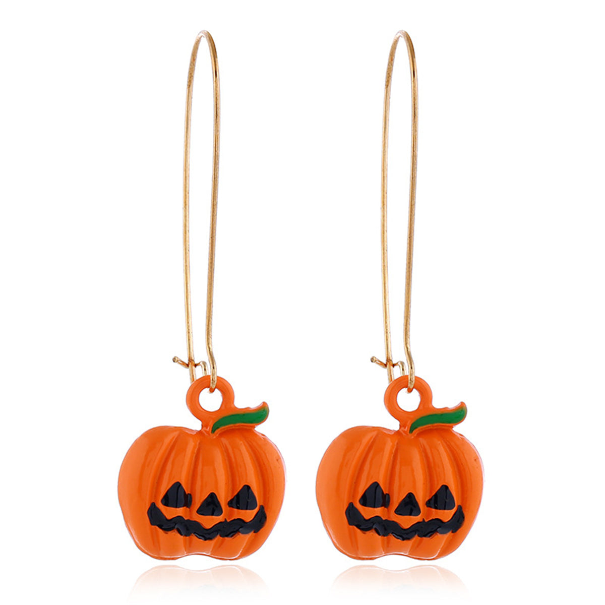 Add a splash of spooky style to your ensembles with these drop earrings displaying a classic pumpkin design.