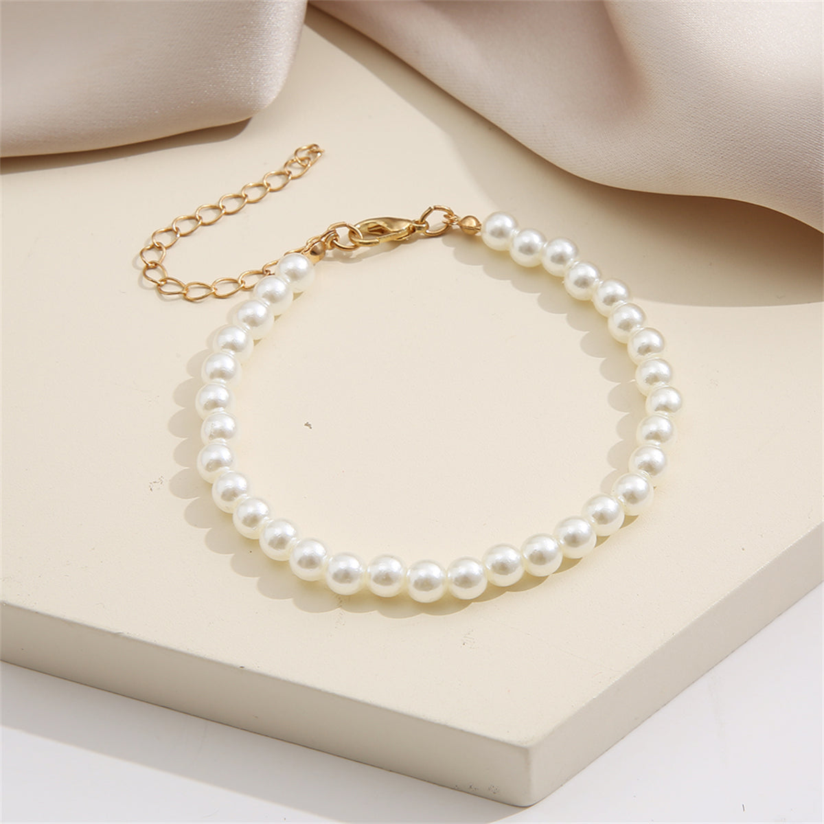 Minimalist anklet featuring pearls and gleaming 18k gold-plated metal.