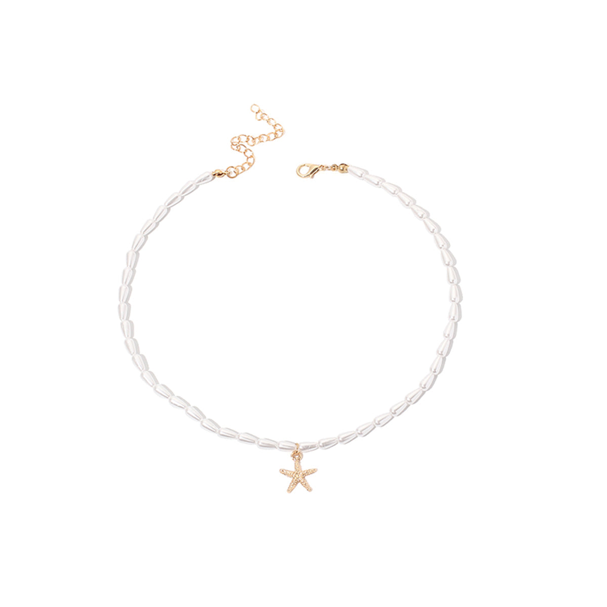 Top off your everyday ensembles with this choker-length necklace featuring oblong pearls and an 18k gold-plated starfish pendant for sea-inspired charm.